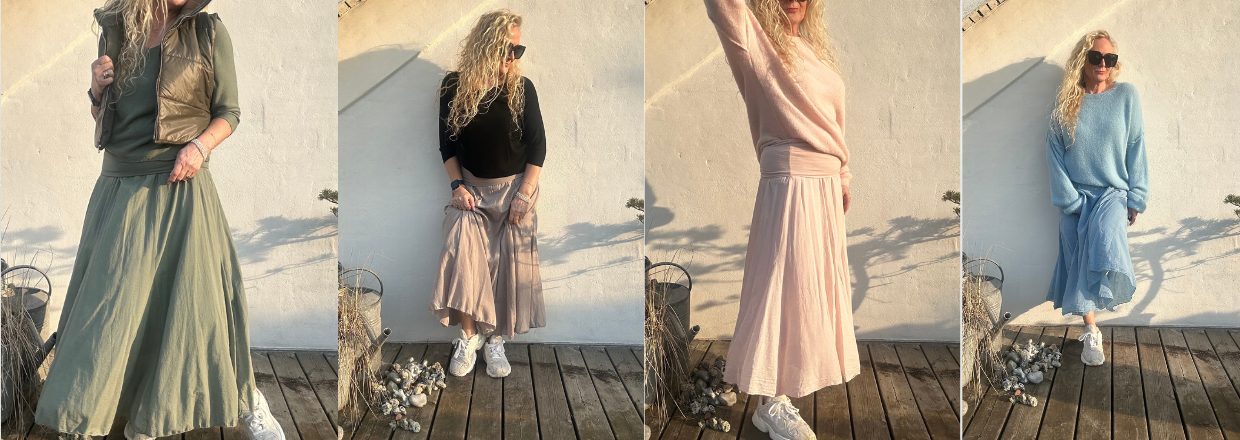 Jeg er stolt af at skabe slow fashion med gode pasformer og tøj af høj kvalitet, der kan bruges igen og igen. Jeg producerer nyheder løbende året rundt.